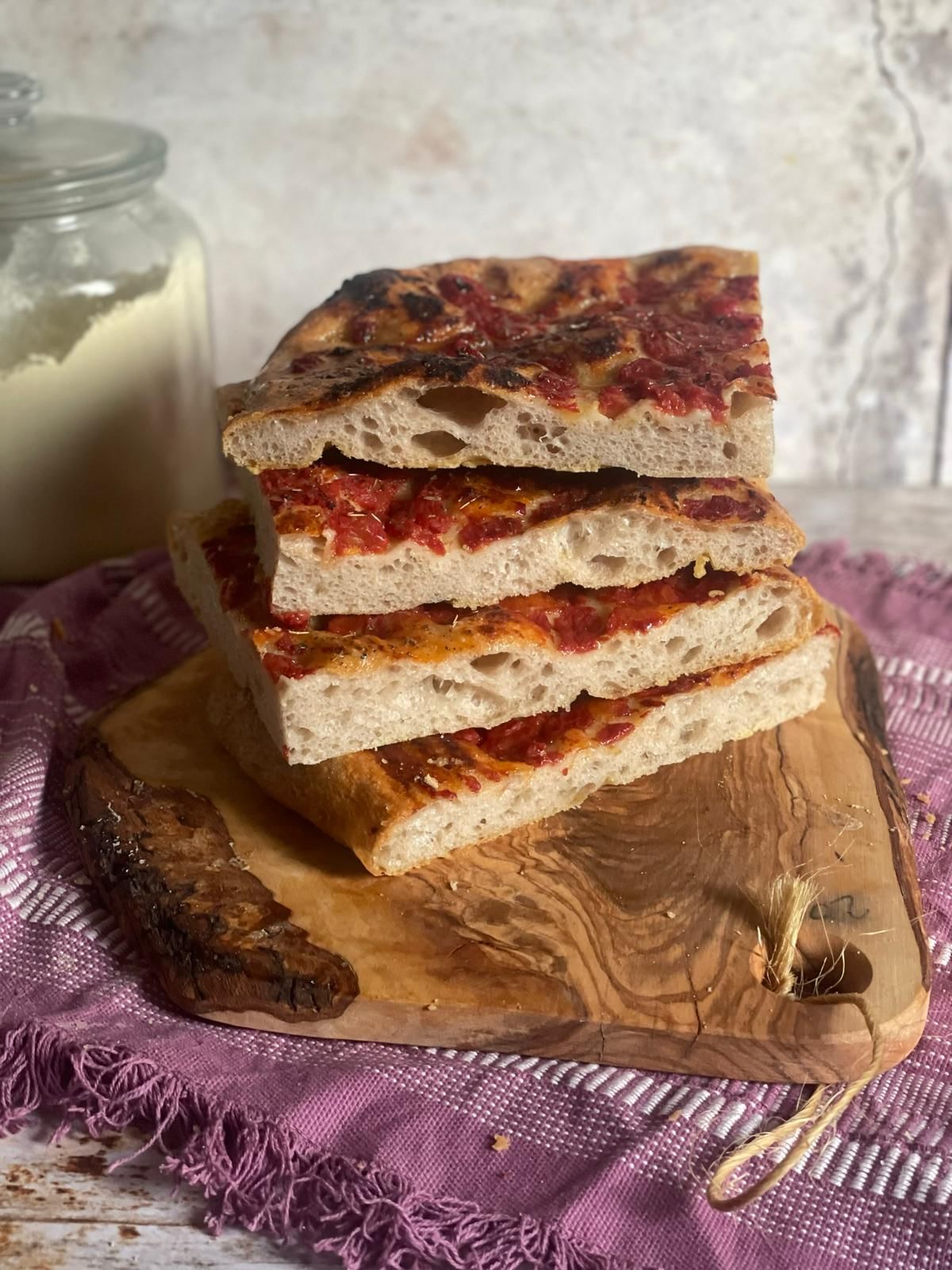 During the grape harvest season (September), we’ll switch one version for the traditional schiacciata con l’uva—a sweet, rustic focaccia that’s been made in Tuscany for generations.
